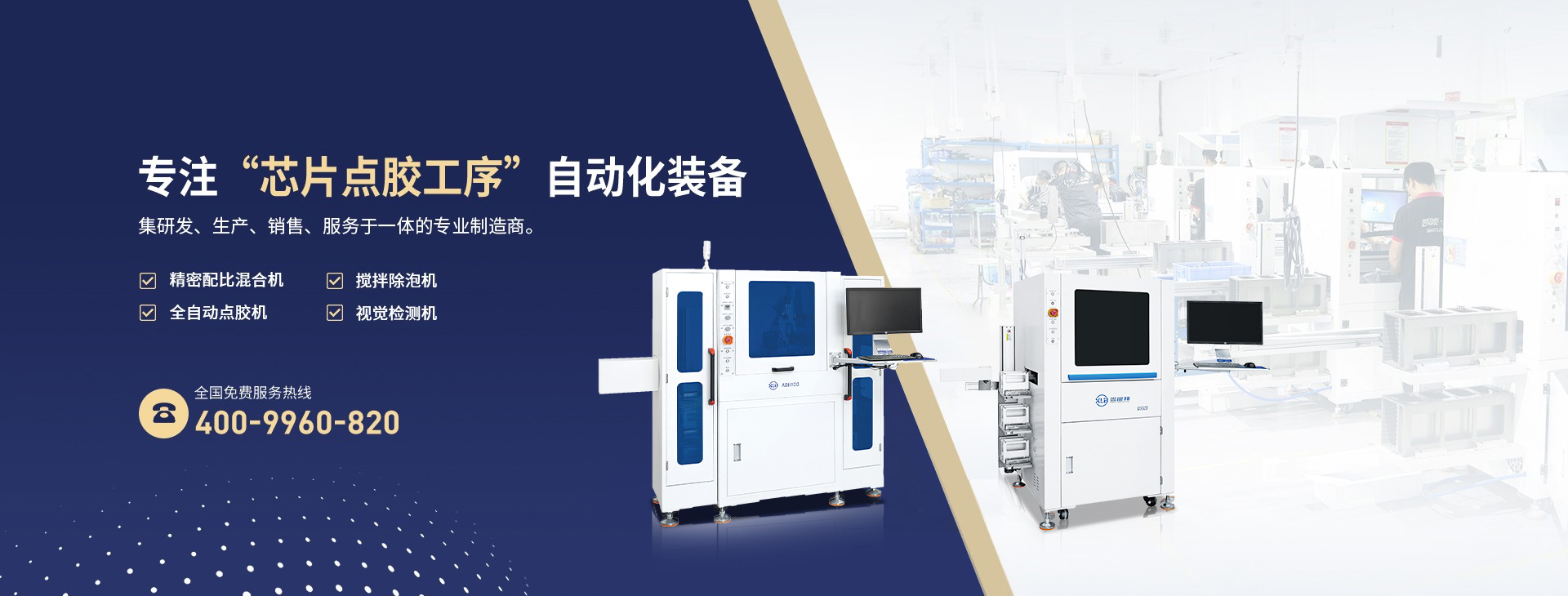 3大產品:均質除泡機、精密點膠機、視覺檢測裝備、